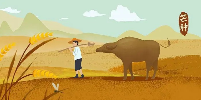 芒种,又名“忙种”,是二十四节气之第九个节气,夏季的第三个节气,干支历午月的起始。斗指巳,太阳黄经达75°,于每年公历6月5-7日交节。芒种,是“有芒之谷类作物可种”的意思。这个时节气温显著升高、雨量充沛、空气湿度大,适宜晚稻等谷类作物种植。农事耕种以“芒种”这节气为界,过此之后种植成活率就越来越低。它是古代农耕文化对于节令的反映。