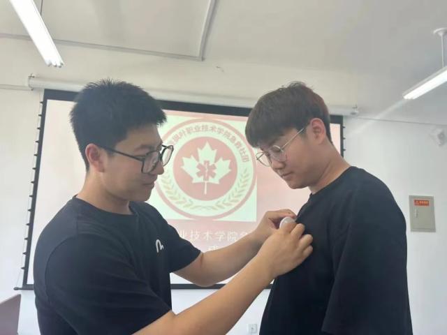 为提高学生的安全意识,增强应急处置能力,面对突发状况时迅速、正确地采取措施,提高自救互救能力,认识生命的价值和意义。2024年6月25日中午,大连枫叶职业技术学院护理产业学院“应急救援”社团在3楼急救实训室举行成立仪式。