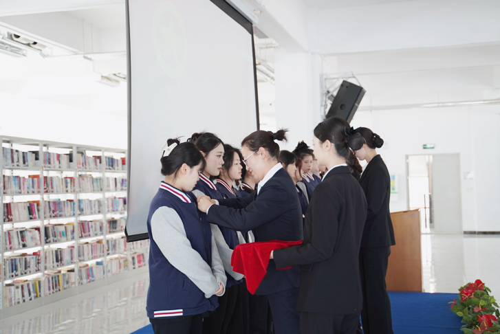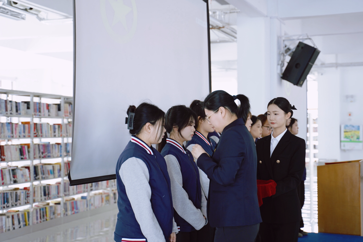 在全体与会人员的见证下,团总支书记梁陆宇及各党员教师为新发展团员佩戴团徽,接过领导们手中的团徽,同学们心情十分激动。在优秀团员代表王诗达的带领下,向团旗庄严宣誓,向组织表达积极进取、顽强拼搏、接续奋斗的决心。宣誓结束后,新团员代表尹馨瑶进行发言,分享她对团员身份的理解和对未来的展望。她的发言不仅展现了青年团员的活力与热情,更体现出她对团组织的深厚情感和为美好未来不断奋斗的坚定信念。通过本次大会,团员们感受到了作为团员的荣耀与责任,更加坚定了永远跟党走、奋进新征程的决心。护理产业学院的团员们将以担当尽责践行初心使命,以更饱满的热情和更坚定的信念,投身于学习和工作中,为实现中华民族的伟大复兴贡献青春力量。\