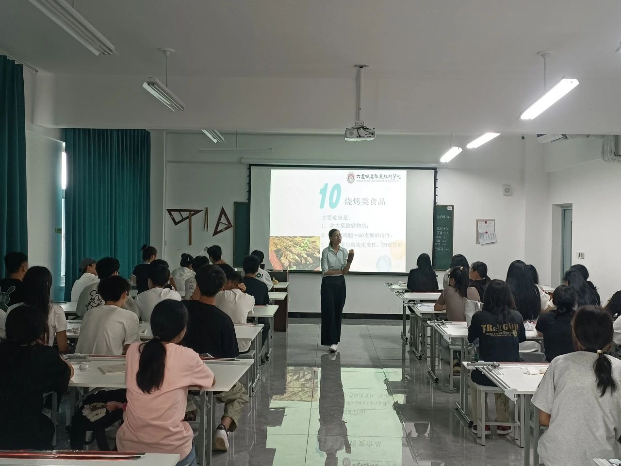 在这堂课上,滕人娇老师以其深入浅出的讲课方式,带领学生们探索了如何通过合理饮食实现健康和美丽的奥秘。这堂名为《吃出你的健康和美丽》的课程,不仅让学生们受益匪浅,更赢得了广泛的好评。滕人娇老师从健康饮食的重要性入手,通过列举诸多生动的案例和数据,让学生们深刻认识到饮食与健康、饮食与美丽之间的关系,并特别强调了均衡饮食的重要性。健康饮食并不意味着只吃蔬菜、水果或者完全的节食,而是要合理搭配各种食物,摄入足够的营养物质。为了让学生更直观地感受到这一点,滕人娇老师还推荐了系列食谱并附上烹饪方法,如燕麦粥、牛奶、水果沙拉的早餐搭配,烤鸡胸肉、糙米、蔬菜沙拉的午餐组合,以及清蒸鱼、蒸蔬菜、红薯的晚餐选择,都是学生们在校期间就能实现的餐食搭配。