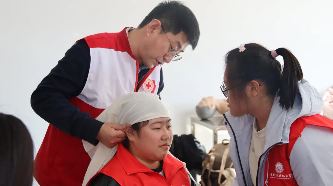作为学校护理类专业建设的核心载体,护理产业学院始终以“培养高素质应用型护理人才”为目标,此次培训既是专业教学的延伸,更是职业素养培育的重要实践。培训团队由学院骨干教师与红十字志愿服务队核心成员组成,讲师均具备丰富的临床护理经验与急救培训资质,课程设置严格对标行业标准——从心肺复苏(CPR)的规范操作、自动体外除颤器(AED)的实战应用,到创伤急救的包扎固定技巧,每一项内容均紧扣护理专业岗位需求,同时覆盖师生日常工作、生活中的应急场景,实现“专业技能”与“实用能力”的双重覆盖。