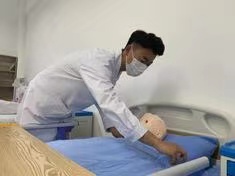 每张多功能护理床供最多4位同学模拟实验,可以让每位同学多次反复操作;模拟人可进行清洁卫生的护理,如口腔护理、皮肤护理、会阴部的护理;鼻饲法、穿脱隔离衣、吸痰、吸氧、导尿、灌肠、膀胱冲洗的技术操作;还可以进行各项无菌操作、各种注射法实际操作;测量血压的模拟模块,让同学们记住测量血压时袖带、听诊器所放的正确位置,如果位置不正确,测量的数值是不准确的;还有静脉输液模块,是非常先进的,内设模拟血管、血浆,穿刺成功会有回血,能让同学们真实的体验到静脉穿刺时进针的角度和力度,实习时就能掌握静脉穿刺的要领,在今后的工作中就会大大提高工作质量;基础护理实训室开设实训项目涉及护理学基础、内科护理、外科护理、妇产科护理、健康评估、综合训练等。各种设备使学生尽早尽快将所学理论知识与技术转化为专业实践能力和从事护理职业的本领。