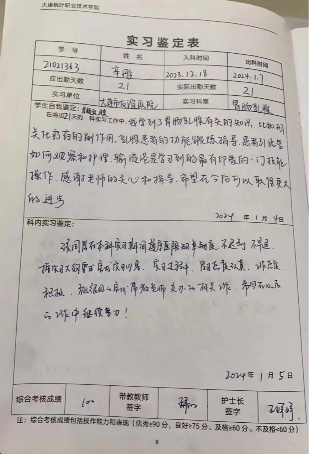 实习医院:大连市友谊医院
