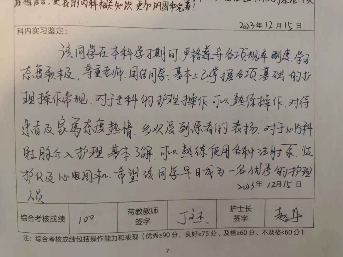 通过这次实习,我对护士的职责和工作有了更全面的了解,也明确了自己未来在这个职业中的方向,我将继续努力学习和提高自己的技能,为患者提供更好的护理服务,通过参与不同科室的工作,学会了团队合作和与患者沟通,我获得了许多宝贵的经验和教训。我相信,这段实习经历将成为我未来发展的坚实基础,让我更好地面对护理职业中的挑战,在未来的职业生涯中,我将继续努力提高自己的专业技能和人际交往能力,为患者提供更优质的服务。这次实习让我受益匪浅,终身难忘,也是我大学生活中最后一笔浓墨的色彩!
