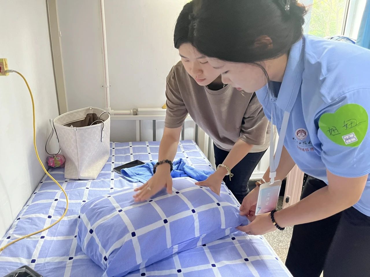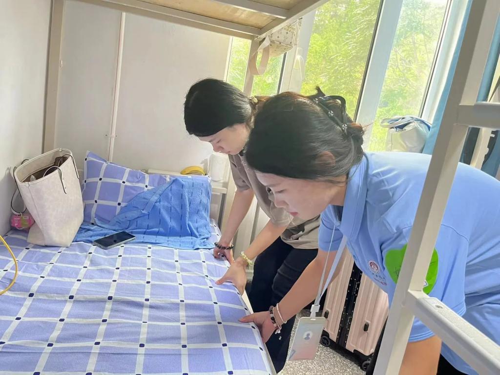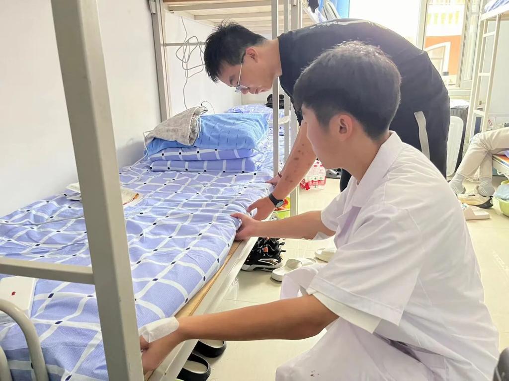 学长学姐帮助新同学整理床铺
