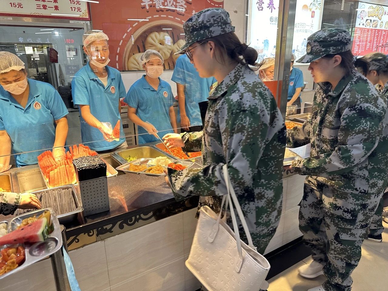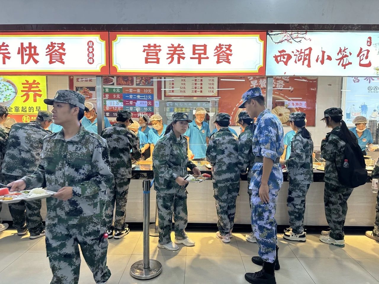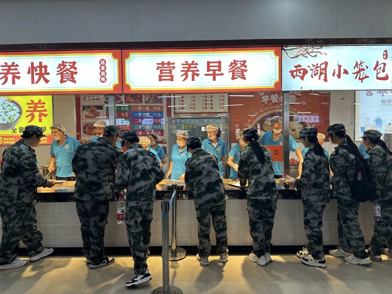 用餐时,让我们继续保持军训时的纪律性,排队有序,文明用餐,展现我们良好的精神风貌。