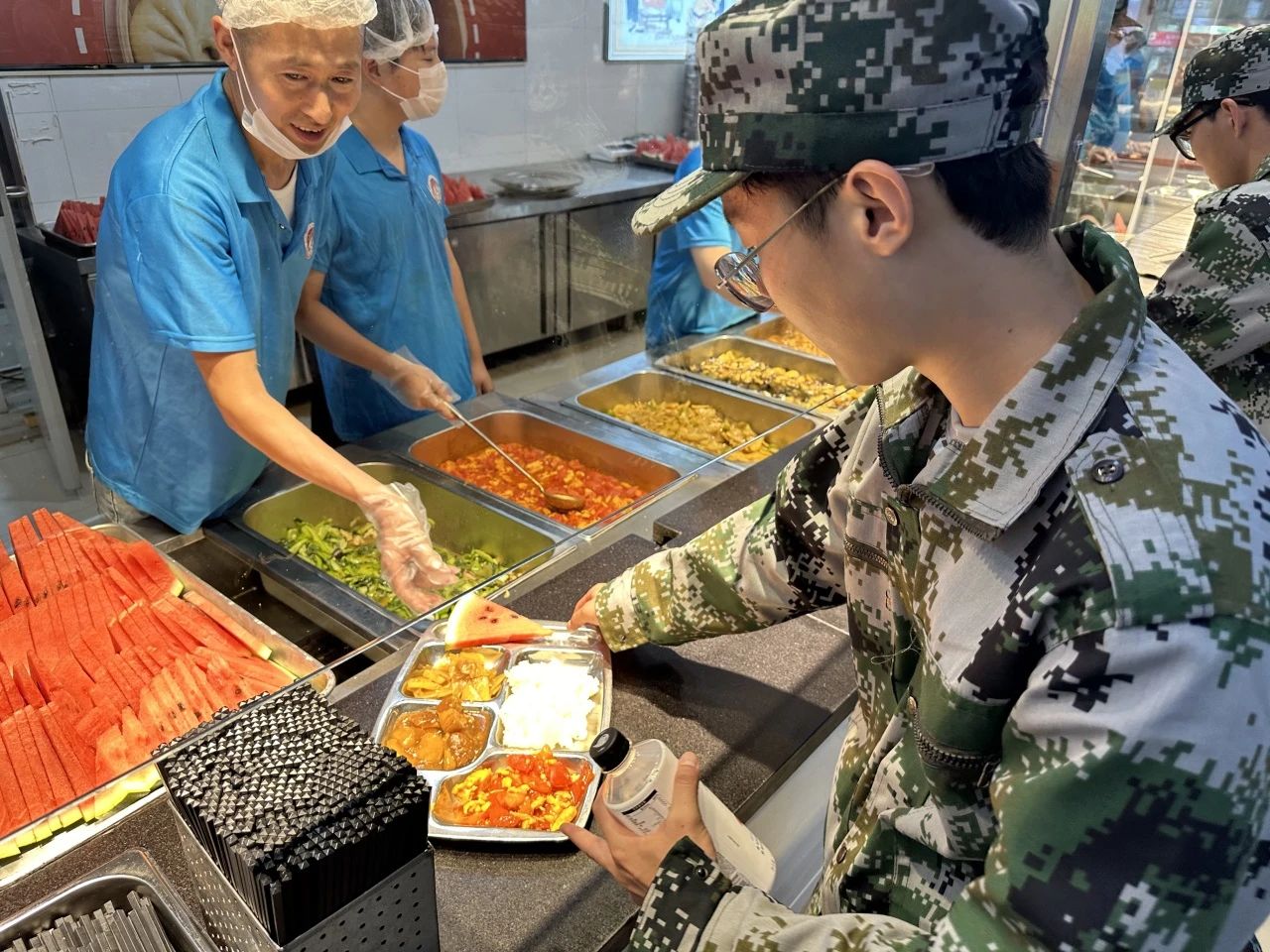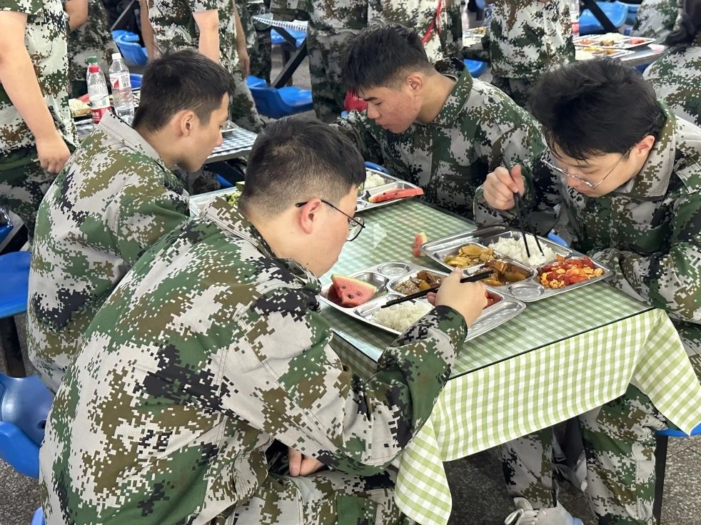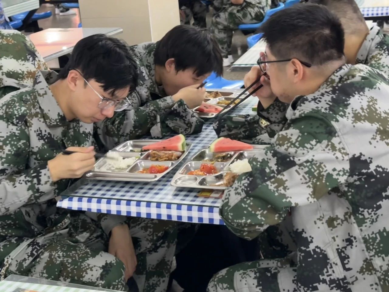炎炎烈日下,我们的军训学子们经过一上午的辛勤训练,终于迎来了午餐时间!食堂为大家准备了丰盛的午餐,色香味俱全,营养均衡。