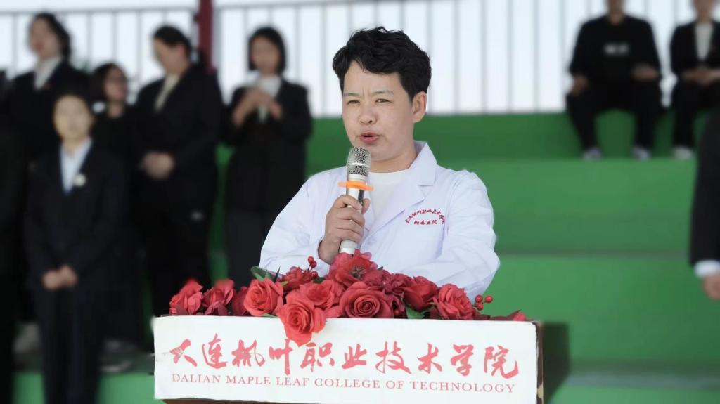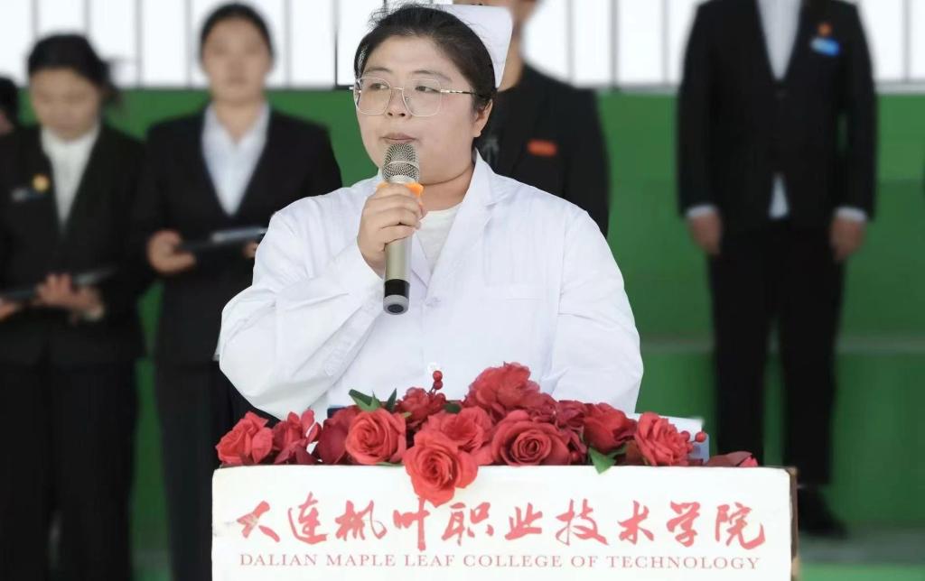 护理产业学院院长王珊在致辞中对学生提出三点期望:一是牢记南丁格尔精神,以“燃烧自己,照亮别人”的情怀投身护理事业;二是夯实专业基础,在临床实践中锤炼过硬本领;三是永葆创新活力,以科技赋能护理服务,推动行业高质量发展。她特别提到:“护理事业不仅需要精湛的技术,更需要人文关怀。希望你们成为有温度的护理人。”
