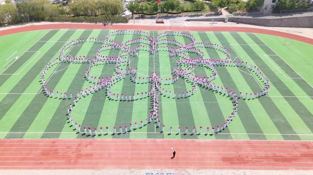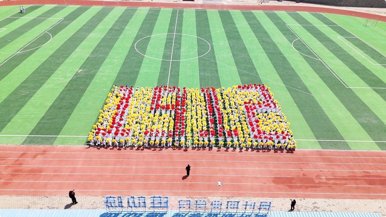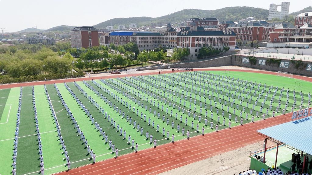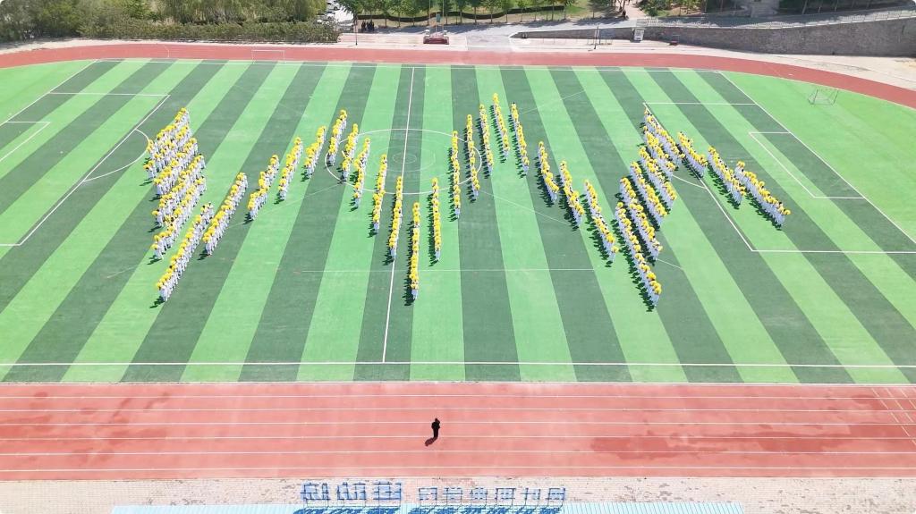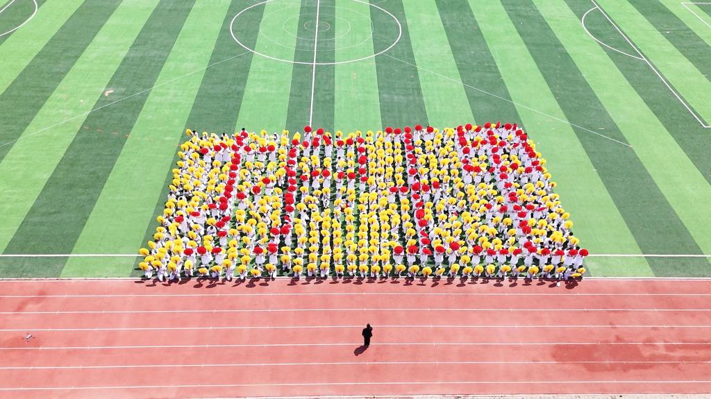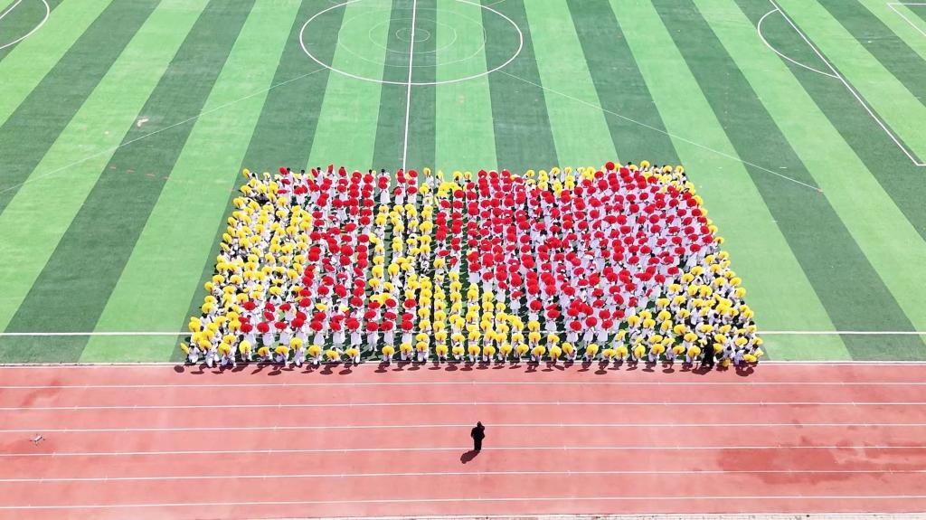 护理产业学院学生进行《舞动青春,共铸辉煌》大型团体操表演。