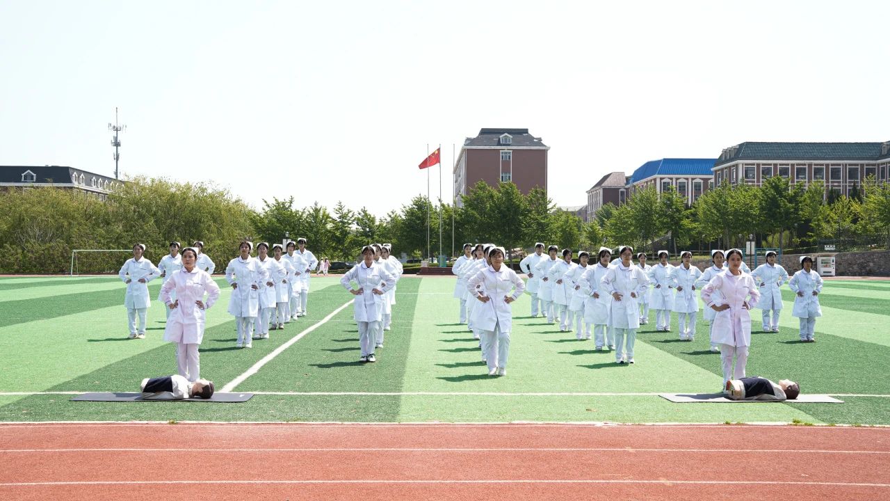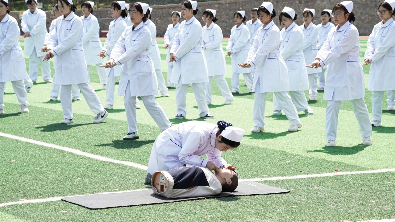 中职校的护理专业学生表演《心肺复苏之歌》。