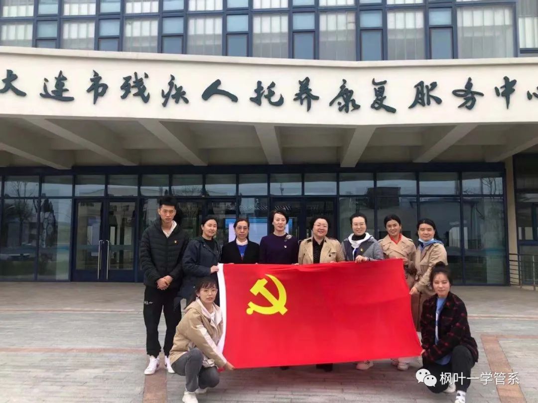 为庆祝建党100周年,增强新时代的使命感和责任感,更好的实现个人价值,拥抱新时代,树立新形象,医养康护系党支部于2021年4月23日下午1:00,在大连市残疾人托养康复服务中心开展了主题为“实践耀党旗,爱心伴我行”的党日活动。学院党委书记申秀梅和学管系全体党员共同参与,在服务中心王荔主任的带领下,所有党员老师参观了大连市残疾人托养康复服务中心。