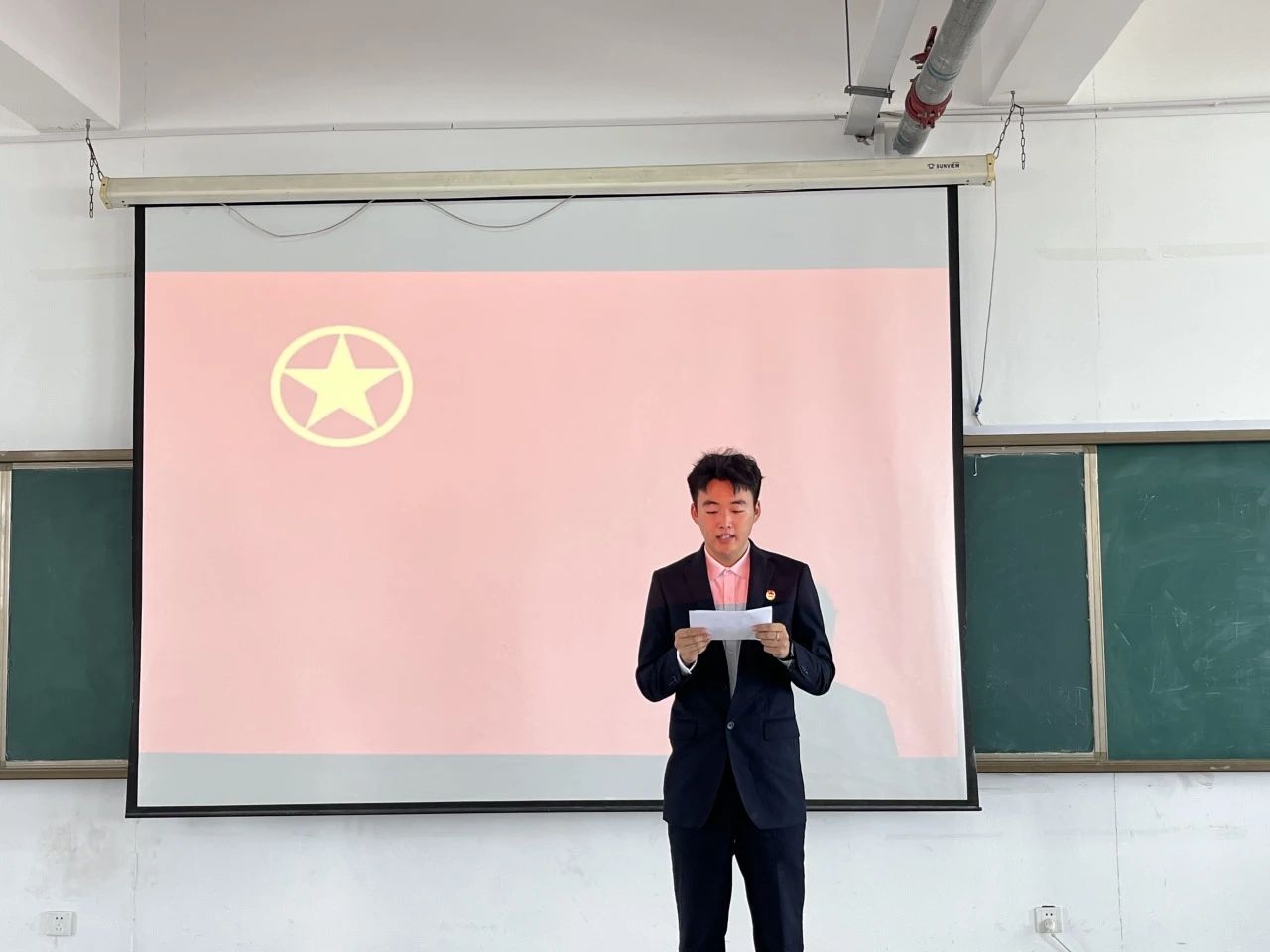23护理12班乔奎贺同学作为新团员代表讲话。他表达了自己对成为共青团员的激动和自豪之情,并承诺将以实际行动践行团员的职责和使命。