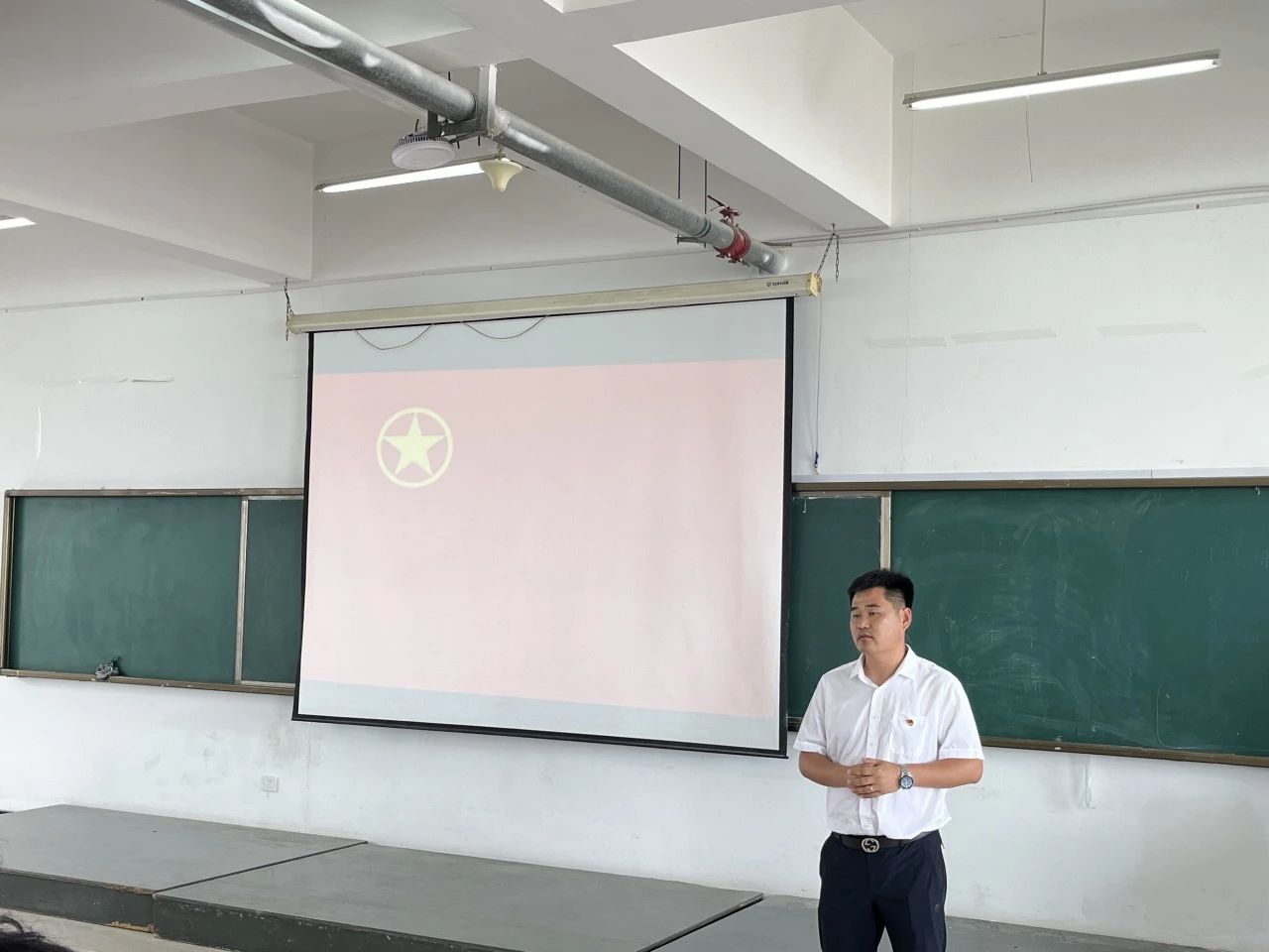仪式在庄严的国歌声中拉开帷幕,全体师生共同奏唱国歌,新团员们将在未来的日子里,共同肩负起为共产主义事业奋斗的重任。宣读新团员名单后,新团员们郑重的进行宣誓:“我志愿加入中国共产主义青年团,坚决拥护中国共产党的领导,遵守团的章程,执行团的决议,履行团员义务”宣誓声铿锵有力,展现出了对中国共产主义青年团热爱和对共产主义事业的坚定信念。党员教师们为新团员们颁发了团员证并佩戴了团徽,不仅代表着新的身份和荣誉,更承载着新团员们对于团组织的责任和使命。