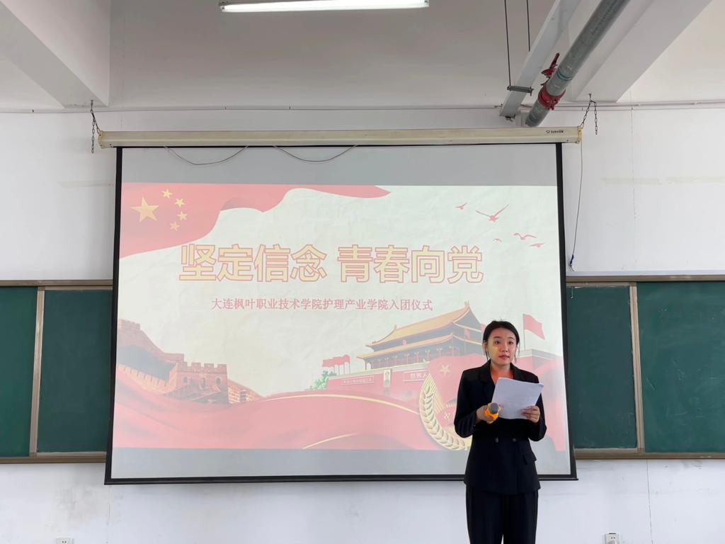 最后,护理产业学院副院长孙永海向新团员们表示了热烈的祝贺。共青团是培养青年成长成才的摇篮,是连接党和青年的桥梁,希望新团员们能够秉承共青团的光荣传统和优良作风,不断学习、不断进步。在这里不仅要学习科学文化知识,更要学会做人做事,树立正确的世界观、人生观、价值观。共同成长,成为有理想、有本领、有担当的新时代青年,绽放出更加绚丽的青春光彩!