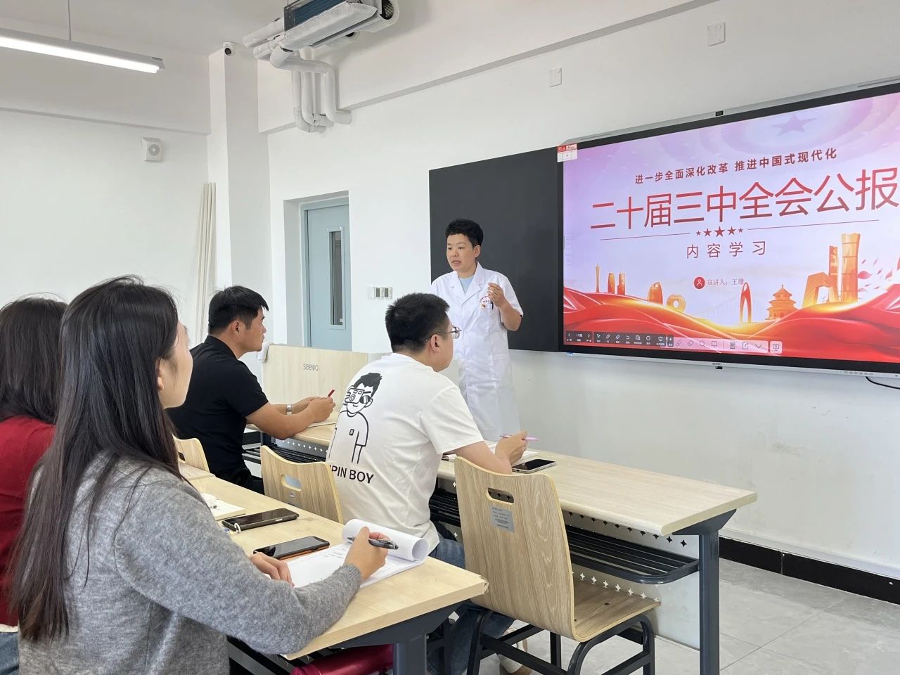 党员们在聆听过程中全神贯注,认真记录。大家纷纷表示,王珊书记的党课让他们对党的二十届三中全会精神有了更深刻的理解和认识,也更加明确了自己在学院发展和国家建设中的责任与使命。