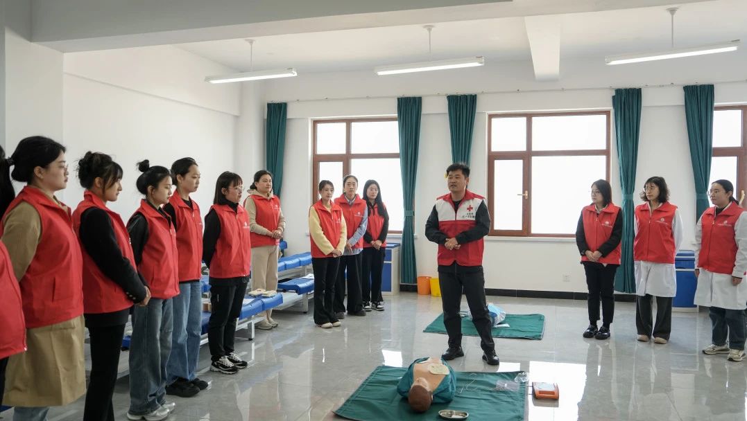 4月20日,大连枫叶职业技术学院护理产业学院党支部开展“双百赋能践初心·红十字救护志愿先锋行”主题党日活动,同步完成百人初级救护员培训、红十字志愿服务队成立及百余名志愿者招募,以实际行动践行党建引领与公益服务深度融合。
